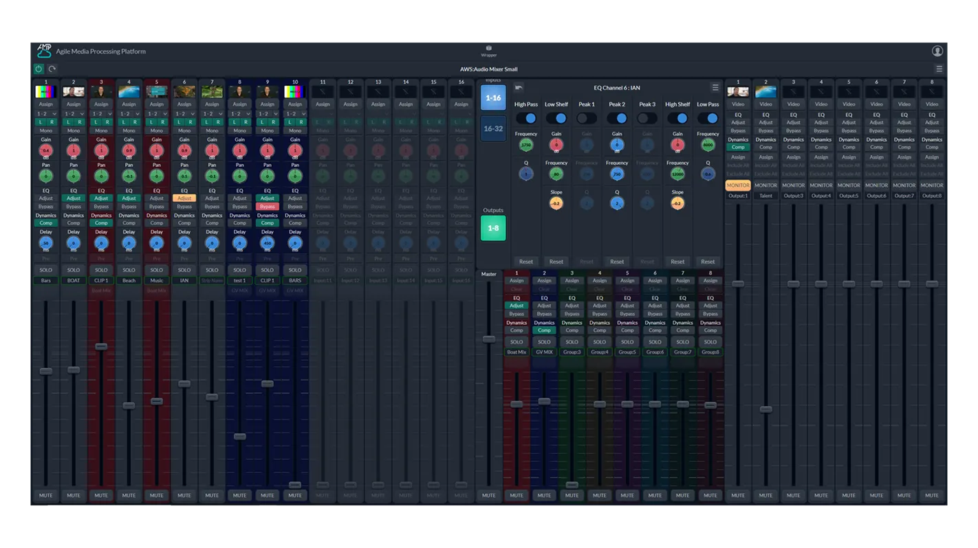 O Audio Mix X da Grass Valley® tem acesso a qualquer fonte na rede AMPP® sem necessidade de recabeamento. Além da simples rotulagem de texto, o AMPP fornece quadros-chave de vídeo para o Audio Mix X para fácil identificação de cada fonte, junto com monitoramento direto de vídeo e áudio combinados nas saídas. A janela de monitoramento pode ser localizada diretamente na UI do mixer de áudio ou em um monitor separado e maior.
